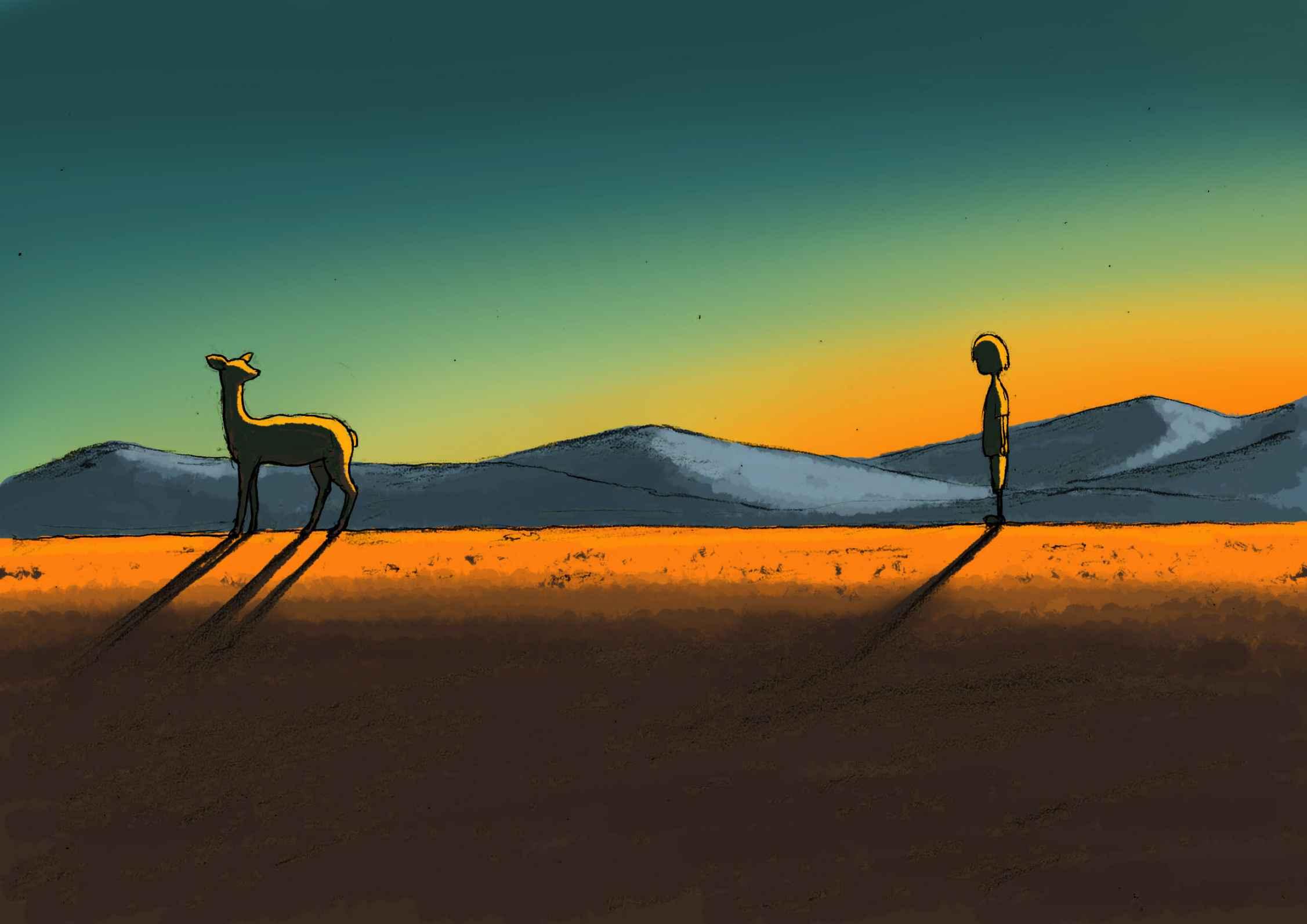 山路永无止境,傍晚如此漫长,天空晴朗。我远远地跟着,他头也不回。有好几次我以为他已经知道我在后面了,以为他故意要把我引去什么神秘的地方。我做梦一样地毫不犹豫。