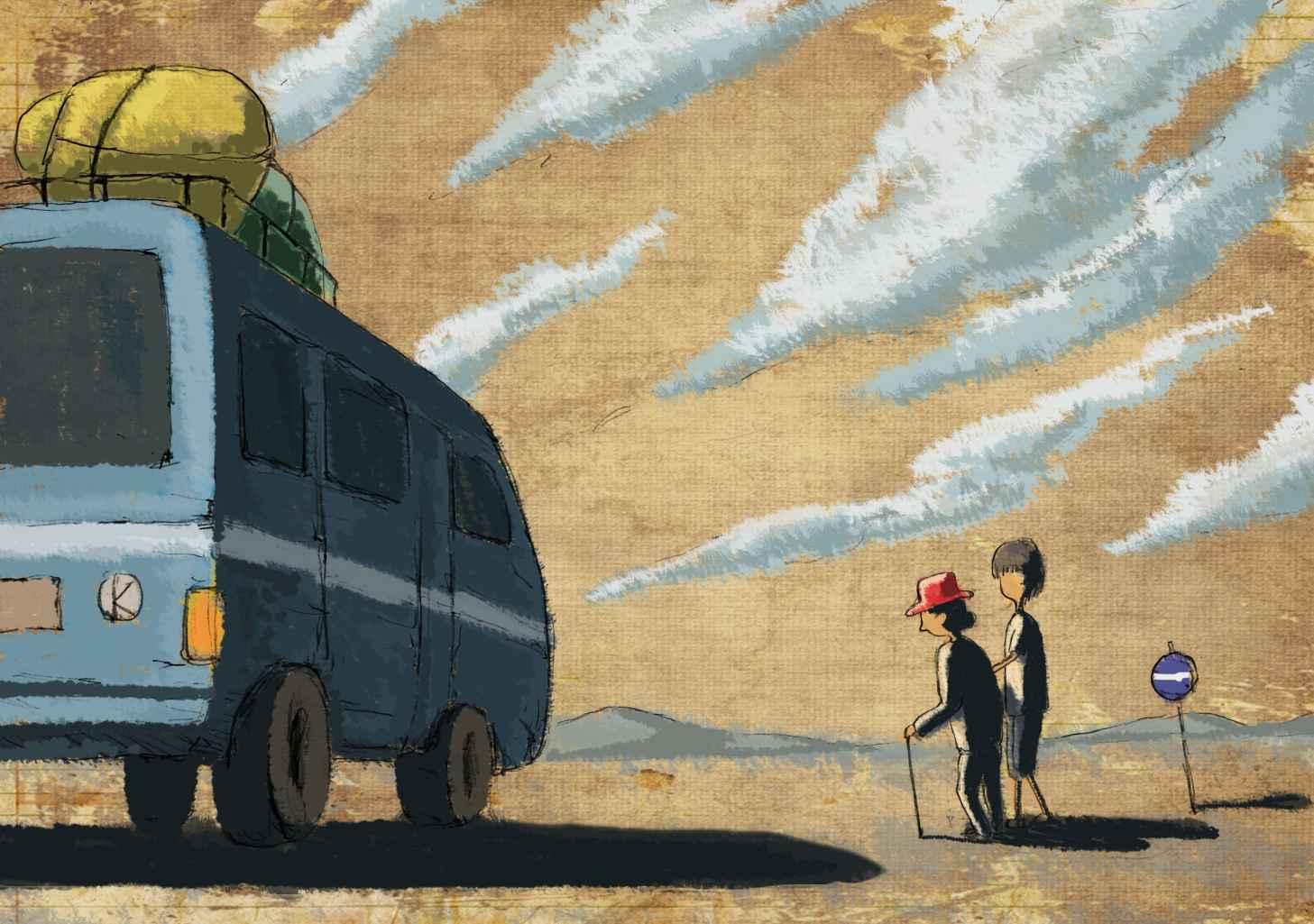 很久以前我们还在牧场上流浪,那年外婆八十八岁,我决定带着她离开深山。我收拾好行李,和外婆走到土路边等车,等了很久很久。我对外婆说:“以后你就跟着我过,跟我到乌鲁木齐生活。”那时我一直在心里盘算今后我们两个怎么过日子,租个什么样的房子,打什么样的工。外婆轻轻答应着,但什么也没说。车快来时她才说:“我不是不想和你在一起。我是怕拖累你。”我眼泪流个不停,但还是说:“外婆,我们永远在一起,你不要害怕。”后来车来了,我们上了车。我晕车,一路上不时地下车呕吐。每到那时外婆也跟着我下车,抚摸我的背。后来汽车路过荒野中的一家简易的小食店,所有旅客下车休息。当时那家店里只提供一种食品:炸鱼。我什么也吃不下,只给外婆买了一些。本来外婆从不吃这些有腥味的东西,但那天饿极了,吃了很多。之前我们在山林间一连坐了七八个小时的车,一路颠簸,疲惫不堪。